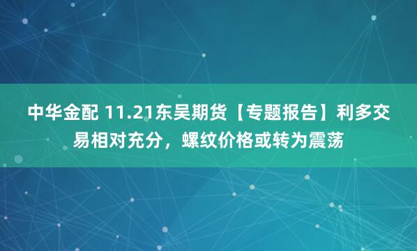 (原标题:11.21东吴期货【专题报告】利多交易相对充分中华金配,螺纹价格或转为震荡) 利多交易相对充分,螺纹价格或转为震荡 东吴期货 朱少楠 主要观点:宏观预....