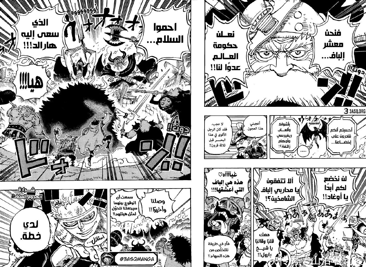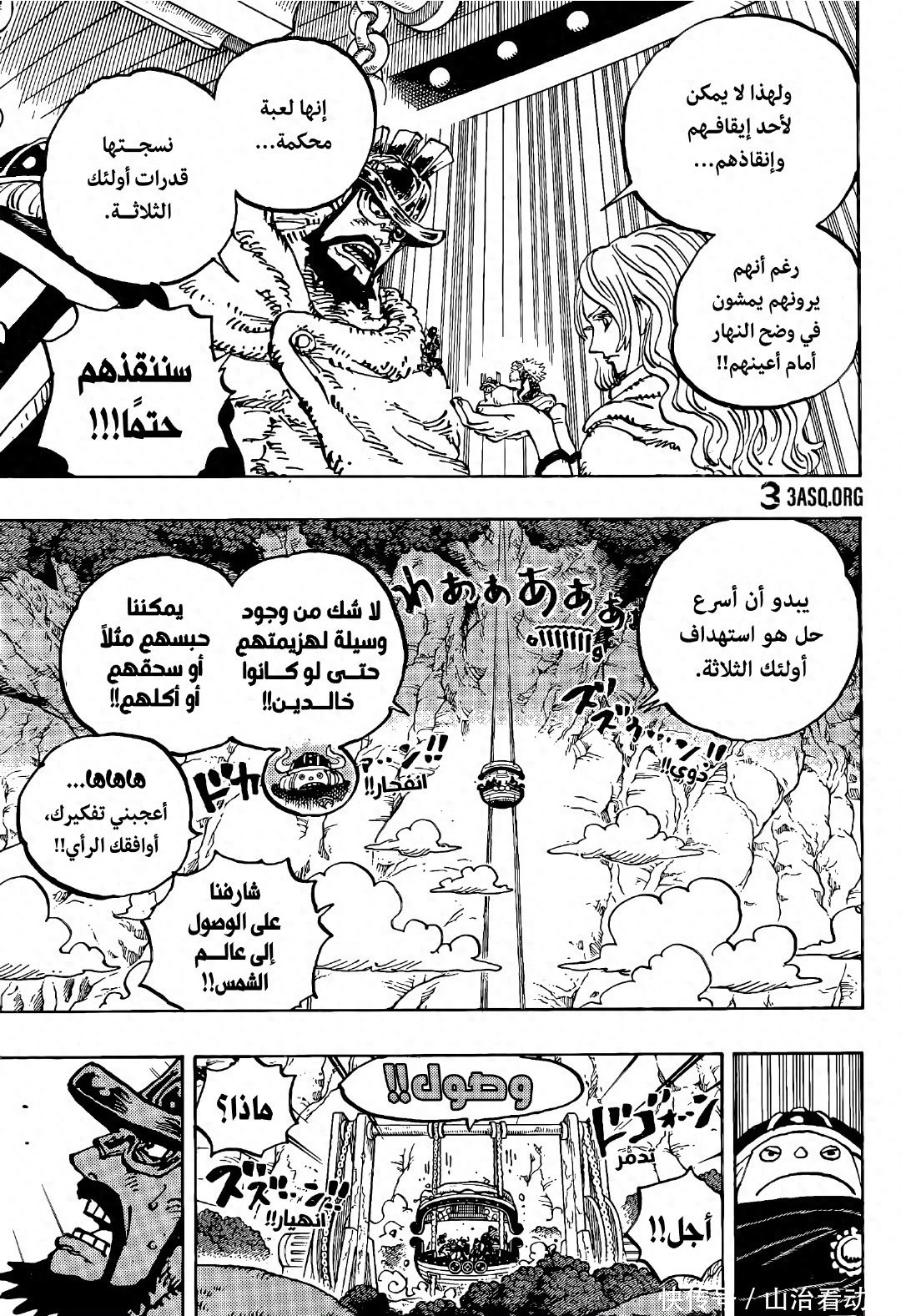 三名神之骑士团联手,他们很快就把孩子掳走,麒麟戈姆圣放出梦魇怪物,他们阻止巨人族战士营救孩子。军子带着孩子前往港口,草帽一伙和巨人族战士都全力出击,不过他们打不赢神之骑士团。