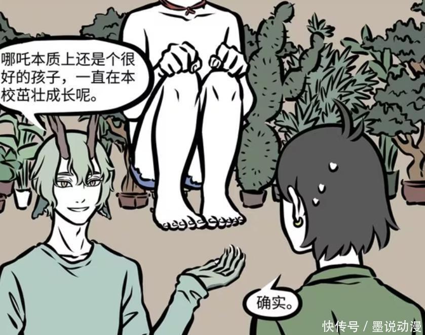 曾经哪吒因为在教室吃火锅,被青龙叫去办公室。青龙的办公室里面,那是种了很多植物。因为青龙可以给植物带来成长,所以哪吒在这里出现了巨大的变化。从原本1米36的个子,长大到起码四五米。