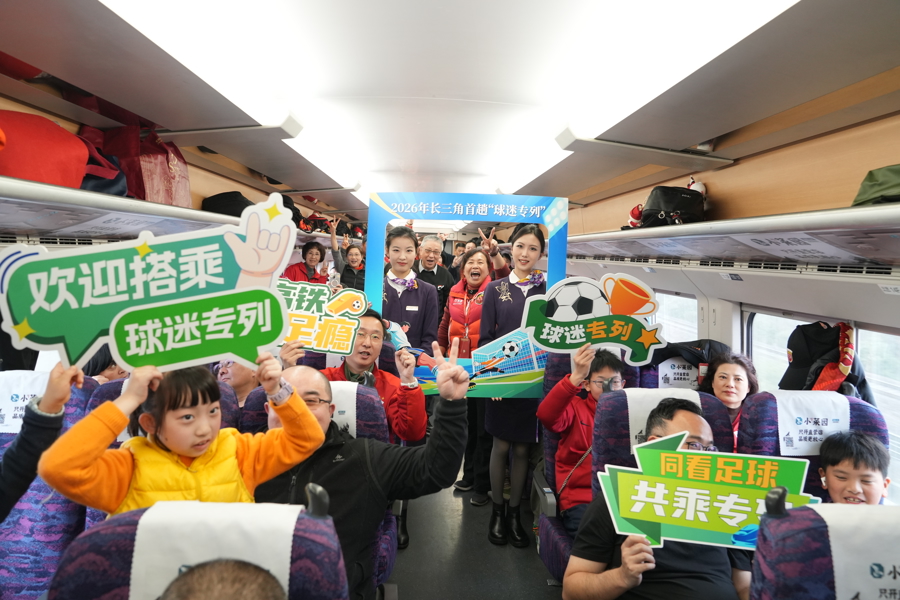 为营造浓厚赛事氛围,铁路部门多措并举提升球迷出行体验。上海站开辟进站绿色通道,设置球迷专属候车室,还在候车室内设立“超级杯”专题引导牌、滚动播放赛事宣传片,协助组织球迷在候车室内合影留念,同时在检票口、扶梯、站台等关键区域增派专人进行引导服务。南京站优化进出站流线和乘降组织,做好安全事项提示,让球迷体验安心、省心、舒心的观赛之旅。南京客运段在列车车厢张贴足球元素窗花,提供合影相框、手举牌,方便旅客打卡留念,同时备足急救药品,增派服务人员,引导球迷安全有序乘降。
